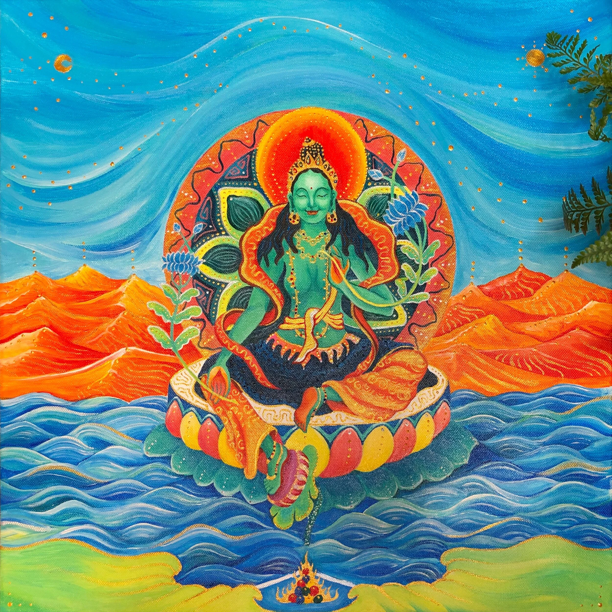 向大地的喜悅訂做一幅自選主題的佛像畫,畫作由喜悅傳播者——Kumud全手繪完成,她尊重自己的感覺節奏來創作。 作畫期間會搭配自選主題佛像角色所匹配的音樂,帶著敬意,帶著寧定能量創作。