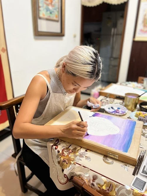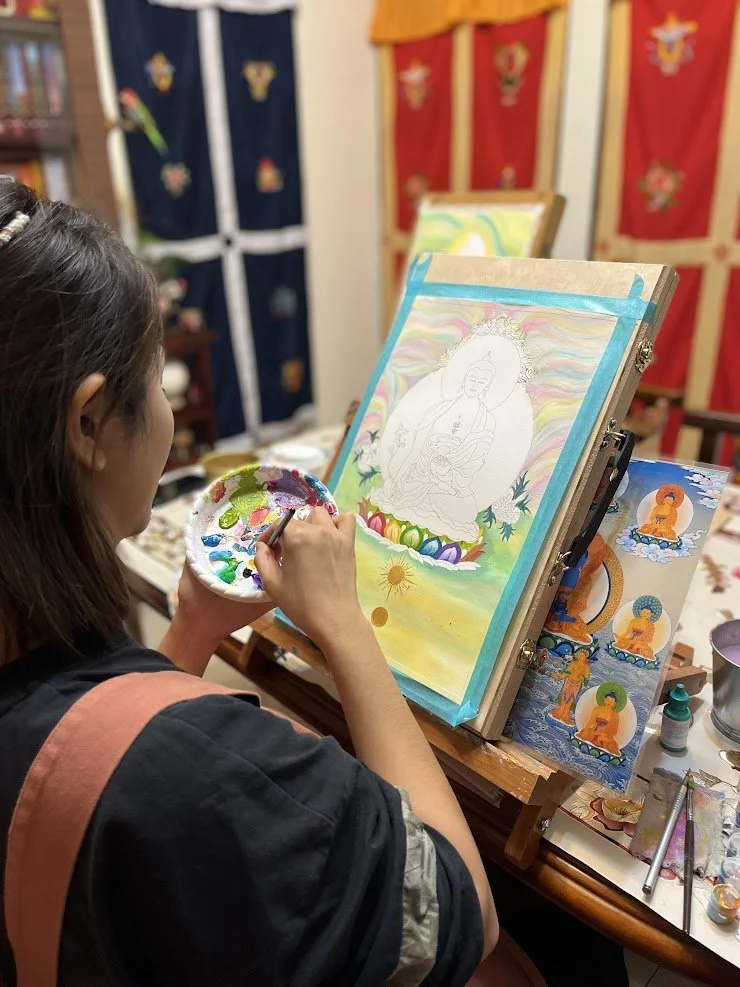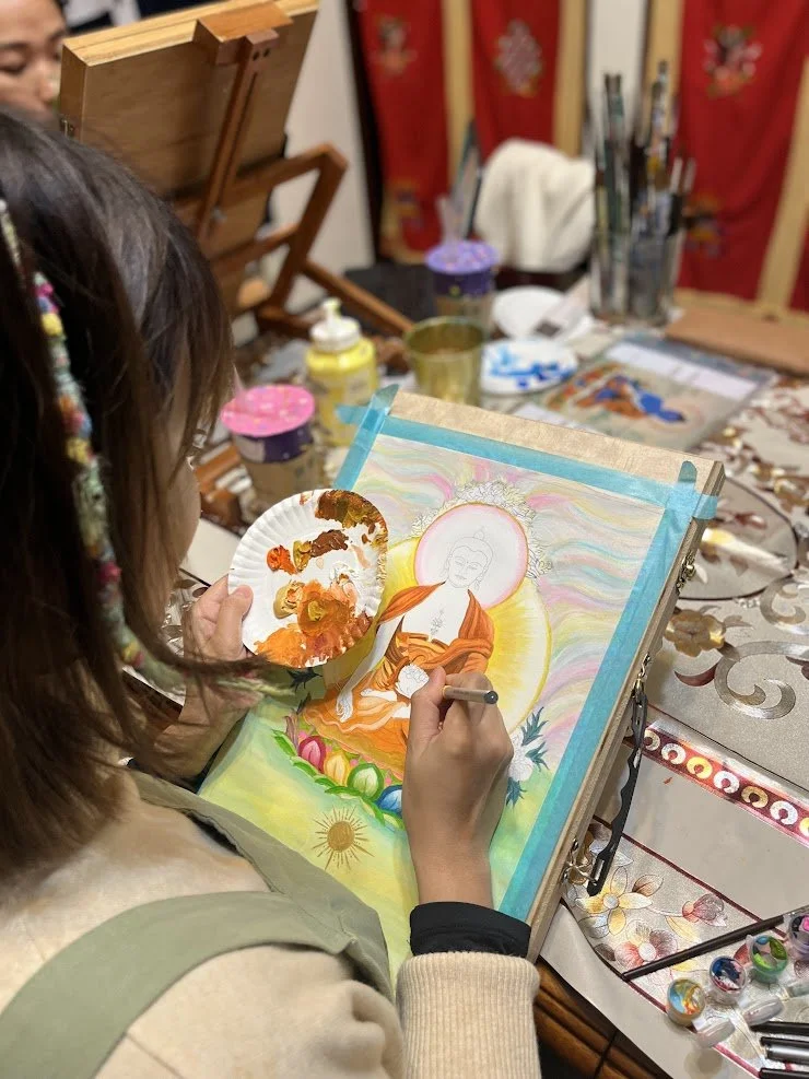 2021年秋冬之際,開始創作第一幅「藥師佛」,隔年2022年秋冬之際,開始帶領「藥師琉璃光如來 ・第一屆佛繪班」,本著崇敬與謙卑之心在殊勝法地創作與分享,在2022年末圓滿了課程。