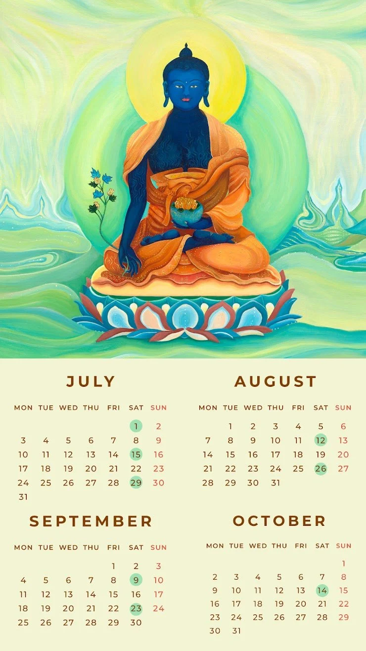 時至,2022年8月25日,那是在經歷風雨沛浪後,內在一股強大的增上力量出現,進入修法的韻律中,找回心靜的時刻;我的心中重新點燃與藥師佛的連結,就像一份電報送進腦海:「藥師佛 佛繪課可以啟動了!」天時、地利、人和匯聚於一念間;就像天空中的水氣匯聚許久,終於下出甘露雨般。
