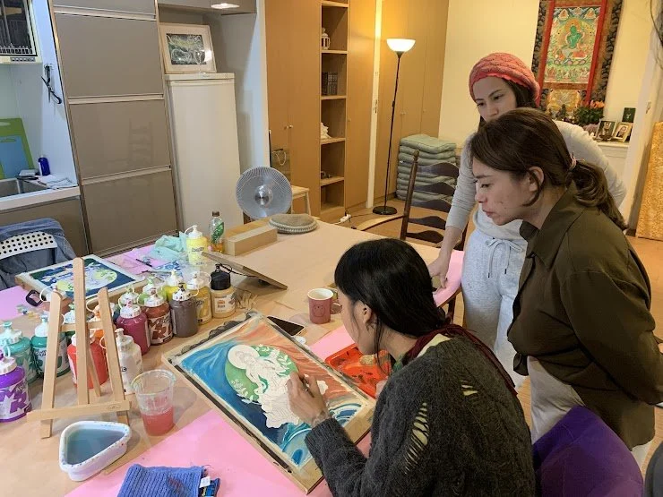2021年始,好友阿尼邀請我開「綠度母喜悅佛繪課」,也領我正式從「藝術創作者」進入到「課程帶領者」的角色,目前已帶領了四期佛繪班,每一次都帶給我莫大的肯定與信心,讓我領悟這是我所擅長的人生志業——以藝術之愛共鳴世界。